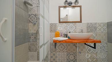 Due stanze molto ampie e luminose, un soggiorno confortevole dotato di divano letto e di una piccola nicchia pensata per la lettura e il gioco, una cucina attrezzata, due comodi bagni, un giardino di pertinenza attrezzato per momenti di relax all' aria aperta e un patio dove parcheggiare l'auto a vista. Arredamento in perfetto stile vintage, essenziale ma dotato di ogni comodità.