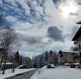 Appartamento al primo piano con cucina completamente attrezzata per poter gestire pranzi e cene in autonomia, 2 camere e bagno con vasca/doccia e riscaldamento con stufa a pellet