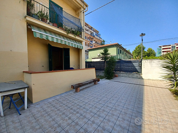 L'appartamento è composto da due camere da letto, cucina completamente attrezzata, bagno e un ampio cortile/giardino esterno.
