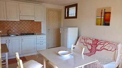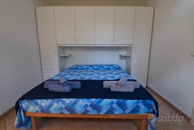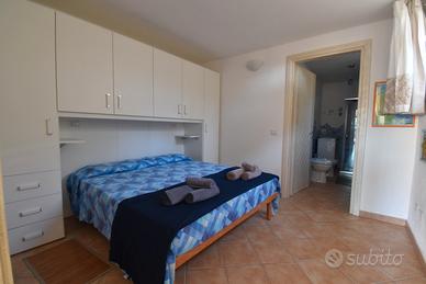 Appartamento, ideale per una coppia, composto da: soggiorno/cucina con divano letto, camera da letto matrimoniale, bagno padronale con doccia, lavatrice, forno a micronde, veranda di ingresso ombreggiata con pergola e doccia esterna, arredi da giardino. Aria condizionata, Tv e Wi Fi gratuito. Possibilità di noleggio biancheria letto e bagno.
