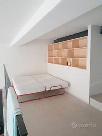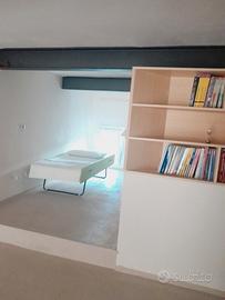 L'appartamento è al piano terra ed è un ampio open space con soppalco.