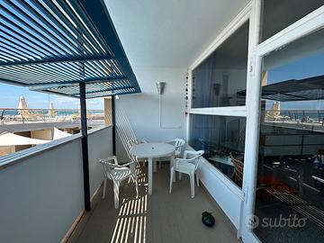 Intero appartamento con 6 posti letto al piano terra di edificio con vista diretta sul mare (nella foto quello con la persiana blu aperta), ventilato e privo di zanzare, con accesso diretto privato alla spiaggia libera antistante, negozi e minimarket nei pressi, centro commerciale Conad e Stazione FS a 2 km, raggiungibili anche con Bus navetta e trenino turistico
