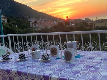 cucina attrezzata 2 camere da letto 1 matrimoniale e una con 2 letti singoli bagno e balcone con tavolo e sedie