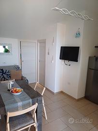 Affitto appartamento vista mare a Torre Grande (Oristano), con una camera da letto composta da un letto matrimoniale e un letto singolo , ingresso soggiorno con divano letto, angolo cottura , bagno con doccia, veranda con tavolo e sedie vista mare.