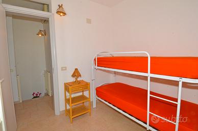 Al piano primo una camera matrimoniale e una camera con 2 postazioni singole a castello , ulteriore bagno (solo sanitari senza doccia) e veranda con vista mare