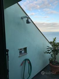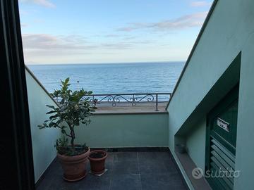 Situato sul lungomare. splendido appartamento di 140 mq circa, posto al 3° ed ultimo piano senza ascensore, composto da salone cucina a vista due camere bagno e cabina armadi, al piano superiore camera bagno e terrazzino, dotato di 6 posti letto, lavatrice, lavastoviglie, Tv, aria condizionata e riscaldamento autonomo, disponibile da settembre 2025, locazione stagionale, periodo minimo di locazione un mese