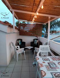 La Mansarda è un monolocale climatizzato al 2 piano con 1 letto matrimoniale e 1 letto a castello, cucina attrezzata di stoviglie, piano cottura a gas, forno elettrico, microonde, macchina da caffè a cialde, frigo + congelatore, tv, bagno con doccia, lavatrice e folletto, all'esterno c'è la veranda semicoperta con vista panoramica mozzafiato, un tavolo, sedie ed un angolo relax. Le mansarde si trovano nel cuore del villaggio, a pochi metri dai campi da tennis ed alle spalle dell'hotel, godrete di tutti i servizi del villaggio turistico