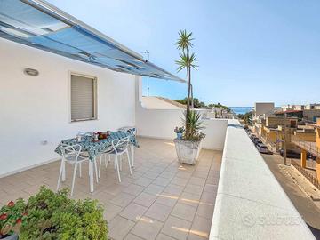 Grazioso attico sito al secondo piano di una palazzina senza ascensore in via dei coralli 1 a Lido Conchiglie, frazione di Gallipoli, a soli 30m dalla spiaggia libera e attrezzata e a 70m da tutti i servizi, quali parafarmacia, bar, tabacchi e supermarket e forno.