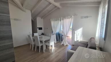 L'attico posto al secondo ed ultimo piano al quale si accede con ascensore privato direttamente in casa, è così composto: soggiorno con angolo cottura e divano letto matrimoniale, ampia veranda coperta con anche meravigliosa vista mare e paese, disimpegno, camera matrimoniale con balcone, camera doppia e bagno completo.