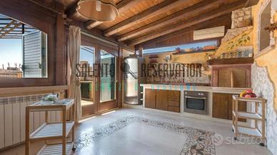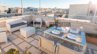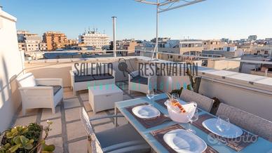 All'esterno un curatissimo ed elegante attico caratterizzato da un meraviglioso ed ampio terrazzo attrezzato con tavolo, sedie, barbecue, doccia esterna e comodi divanetti per rilassarsi al meglio godendo di una panorama stupendo su tutta la città e sul meraviglioso mare con dei tramonti unici.