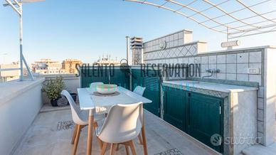 L'attico è in una posizione privilegiata poiché è a due passi dal centro, da corso Roma (il corso principale della città) e dalla spiaggia (la prima spiaggia caratterizzata da scogliera liscia e di facile accesso è raggiungibile a piedi, a circa 500 metri, mentre percorrendo per 1 km si raggiunge il litorale sabbioso più famoso di Gallipoli, che annovera le spiagge da Lido San Giovanni fino a Punta Pizzo.