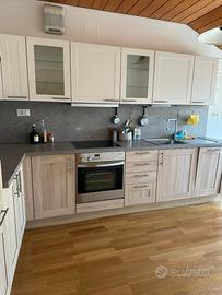 Ampia zona giorno con cucina attrezzata e vista sui tetti della città