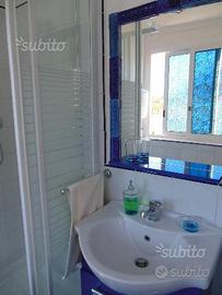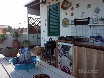 A 100 metri dal mare caraibico di Mondello, delizioso monolocale indipendente con terrazza panoramica con vista mare e cucina attrezzata. L'appartamento arredato in tipico stile siciliano è dotato di tutti i comfort: aria condizionata, riscaldamento autonomo, connessione internet gratuita wi-fi, tv 42 pollici, stoviglie, biancheria bagno e letto, phon, bollitore elettrico, tostapane, macchinetta per caffè, tovagliato da cucina. L'accesso al piano è indipendente, tramite una comoda scala a chiocciola. La struttura è composta da un ampio salone con angolo cottura, tavolo con sedie, armadio guardarobe, letto matrimoniale , divano letto doppio alla francese, scrivania, stanza da bagno con bidet e box doccia. Il salone si apre su un'ampia terrazza panoramica coperta con cucina esterna attrezzata con frigo, barbecue a gas, tavolo, panche e sdraio, che consente di rilassarsi al fresco anche nelle ore più calde e di assaporare le tiepidi notti estive. L'appartamento è ubicato in una posizione ottima perché si trova vicinissimo al mare ma in una zona tranquilla, vicino alla piazzetta di Mondello con il caratteristico porticciolo, i negozi per lo shopping e i locali tipici dove trascorrere piacevoli serate e gustare le rinomate specialità della cucina siciliana, i supermercati, fermata autobus pubblici diretti al centro di Palermo e svariati servizi. In pochi minuti sono raggiungibili a piedi o con la navetta gratuita la rinomata spiaggia dorata di Mondello, i lidi attrezzati, la riserva marina di Capo Gallo, con le sue stupende insenature, la spiaggia di ciottoli e di scogli dell'Addaura. La bellissima città d'arte di Palermo è facilmente raggiungibile in 10 minuti anche con i mezzi pubblici, che si fermano a pochi metri dall'abitazione. In zona c'è un'ampia offerta di servizi: ristoranti, pizzerie, bar, spiaggia libera, lidi attrezzati, fermata mezzi pubblici, supermercati, centro commerciale, farmacia e guardia medica; uffici postali.