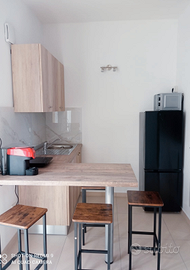 Mini cucina( un fuoco ad induzione,forno a microonde, macchina del caffè a capsule e frigo con congelatore a cassetti)