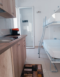 Mini cucina( un fuoco ad induzione,forno a microonde, macchina del caffè a capsule e frigo con congelatore a cassetti)