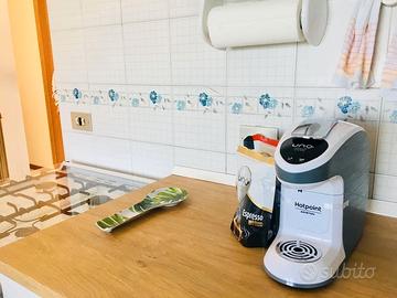 Un elegante appartamento a Vasto Marina centro, situato al secondo piano, servito da ascensore ed a 100 mt dalla spiaggia, in prossimità di farmacia, bar, ristoranti e negozi. Vista mare con due stanze da letto: una matrimoniale ed una doppia, 5 posti letto con biancheria, lettino ad ombrello per bimbo, soggiorno, angolo cottura con piano fornelli, frigorifero, forno, macchina elettrica del caffè e moka, stoviglie, tovagliato, batteria da cucina, set completo di utensili, servizio piatti, bicchieri e posate, suppellettili. e bagno, con kit teli personale.