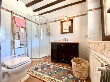 Al piano terra è presente una camera da letto matrimoniale con bagno en suite, al primo piano invece è presente una camera singola, una matrimoniale, un bagno con doccia, una ulteriore camera da letto matrimoniale con il bagno en suite ed un soggiorno molto spazioso dotato di camino a legna.