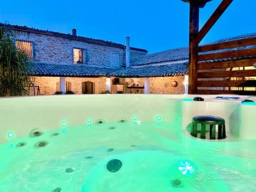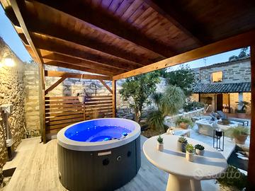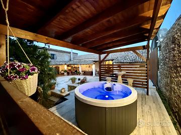 Nel cortile è presente una bellissima Jacuzzi molto spaziosa e che riesce a garantire momenti di relax agli ospiti che la utilizzeranno, un comodissimo forno a legna molto efficiente, tavolo di legno, sedie e sdraio per tutti gli ospiti.