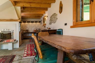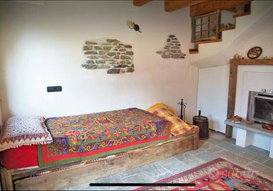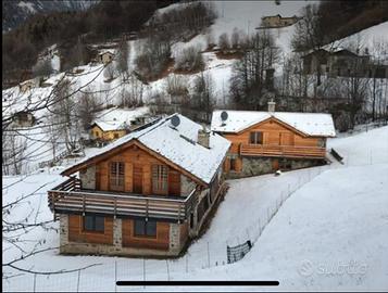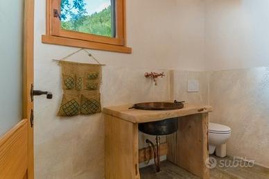 Baita nella natura , interamente ammobiliata , zona pranzo comunicante con zona cottura e bagno al piano terra, due camere e due bagni al primo piano.