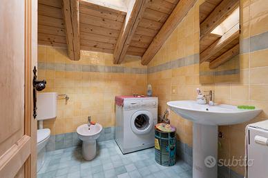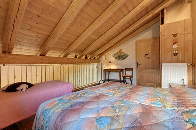 Piano superiore: due camere triple (1 con letto matrimoniale e singola, l'altra con 1 letto a 1 piazza e mezza e 1 letto singolo) e bagno con doccia, bidet e WC.