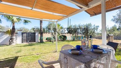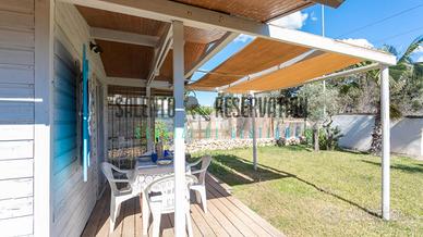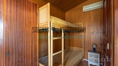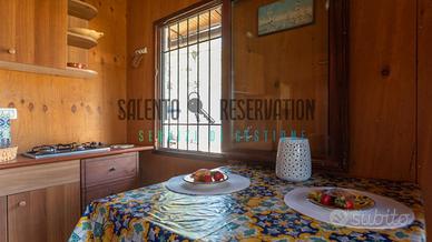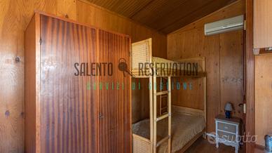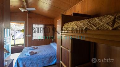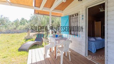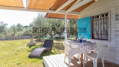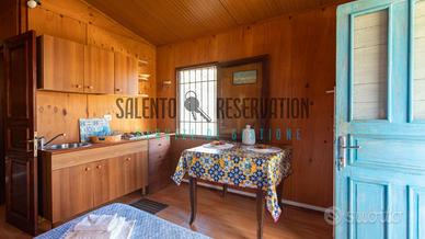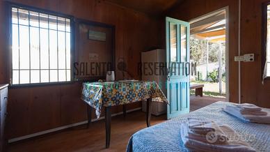 La struttura si compone di un monolocale con letto matrimoniale e un letto a castello, angolo cottura e bagno con box doccia. All''esterno è corredata da una veranda ombreggiata con mobili da giardino ideale per le vostre colazioni, pranzi o cene all'aperto. L'ampio giardino recintato offre la possibilità di viverlo interamente nell'arco di tutta la giornata, sia per rilassarsi all'ombra degli alberi di ulivo che per prendere il sole e per fare degli ottimi barbecue.