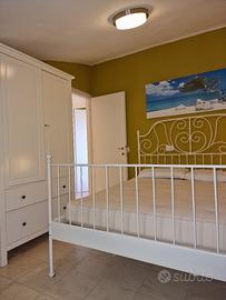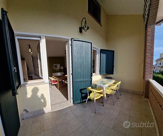 Last minute!!!!!!!Proponiamo in affitto a Lido degli Scacchi a m. 50 dal mare, in zona centrale ben servita da negozi e servizi, villetta di recente costruzione, di mq. 90. Ubicata al 1° ed ultimo piano (su due livelli), ha l' ingresso indipendente e il giardino piastrellato di proprietà con posto auto. L' immobile è composto al primo piano da: luminoso e ampio soggiorno con cucina a vista che si affaccia su uno spazioso terrazzo con barbecue (e con arredo per estewrno per mangiare fuori ) e dal quale si vede uno scorcio di mare e un bagno accessoriato con box doccia. Al secondo piano la sua composizione è la seguente: due camere letto matrimoniali ( con un letto matrimoniale + 1 altro letto singolo in ciascuna camera letto)e il secondo bagno accessoriato con box doccia. La villetta è dotata di riscaldamento autonomo con caldaia a gas metano, aria condizionata, lavatrice, frigo-freezer, tv satellitare. In totale 6+2 posti letto
