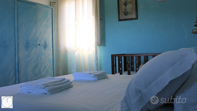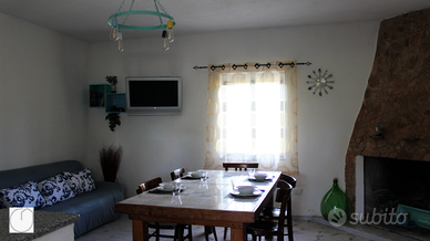 Al piano terra si trova un'ampia veranda coperta con barbecue, tavolo e e divanetti, si accede poi alla zona giorno con cucina e TV satellitare e un bagno di servizio con doccia esterna. Al piano superiore, al quale si accede tramite scala esterna coperta si trovano due camere e il bagno.