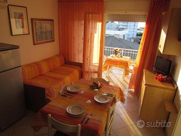 L'appartamento, situato in un condominio ben curato, è composto da un soggiorno con divano letto doppio, angolo cottura funzionale, una camera matrimoniale, una cameretta con due letti singoli, bagno recentemente ristrutturato con box doccia e un ampio terrazzo esposto a ovest, ideale per godersi il sole del pomeriggio.