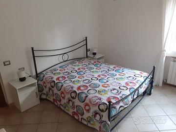 Bellissimo , luminoso e comodo bilocale situato a 200 metri dal mare e dal centro , al piano terra con ingresso indipendente e resede esclusivo con 4/5 posti letto. L'appartamento è composto : - cucina soggiorno con divano letto matrimoniale, lavastoviglie, frigo-congelatore, forno microonde e forno ventilato, tv lcd , stoviglie , pentolame e tutti gli utensili di cucina; - camera matrimoniale ampia con letto matrimoniale e possibilità di aggiungere un letto singolo; - bagno finestrato , con box doccia lavatrice e asciugacapelli. All'esterno spazio arredato con tavolo , sedie e ombrellone. Lavanderia dove è possibile riporre l'attrezzatura per la spiaggia. BOX AUTO e posto auto adiacente l'appartamento. Vicino a tutti i servizi l'affitto si intende settimanale e plurisettimanale da sabato a sabato . Non si fornisce la biancheria Si accetta un solo animale di piccola e media taglia. Per ulteriori informazioni e prenotazione contattatemi telefonicamente o tramite whatsapp al 3383726199 Caterina.
