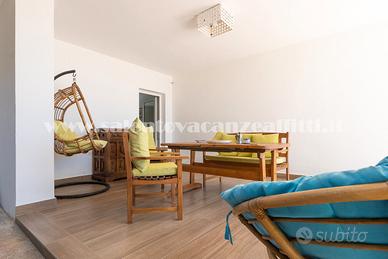 GRAZIOSO E NUOVO bilocale sito all'interno di una villetta dove sopra ci abita la proprietaria che ha accesso con scale al piano primo mentre il piccolo bilo sta al piano terra circondato dal suo spazio esterno e da una terrazzina coperta per godere del profumo del mare in totale relax, attrezzato con dondolo e poltroncine da giardino.