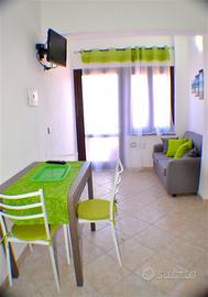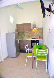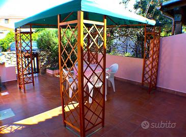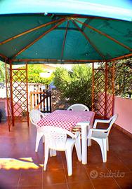 Grazioso bilocale, piccolo e confortevole a due passi dal centro di San Teodoro. L'alloggio dispone di una camera da letto matrimoniale, bagno con doccia, soggiorno con angolo cottura e ventole a soffitto e aria condizionata. All'esterno c'è un comodo gazebo, barbecue, doccia esterna. Posto auto su strada non assegnato, tv lavatrice, WI FI. A disposizione due bici; distanza dal centro circa 400 mt, distanza dal mare circa 1200 mt. Costo a partire da maggio a settimana