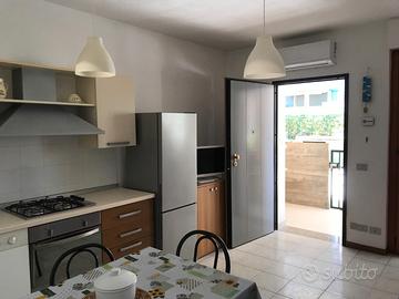 Appartamento per massimo 4 persone, posto al piano terra in una palazzina fronte mare (per raggiungere il mare basta attraversare la strada), con ingresso separato dal condominio, nella zona sud di Tortoreto, provvisto di: soggiorno con angolo cottura, divano letto, camera matrimoniale e bagno finestrato con lavatrice e doccia. Il terrazzo è accessibile dal soggiorno ed è ideale per pranzare o cenare all'aperto. L'appartamento è provvisto di lavastoviglie e aria condizionata sia in cucina che in camera da letto.