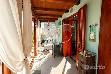 Dal giardino attrezzato di zona barbecue e doccia esterna si accede ad una veranda coperta arredata di tavolo e sedie e zona relax dove poter trascorrere delle splendide serate all'aperto.