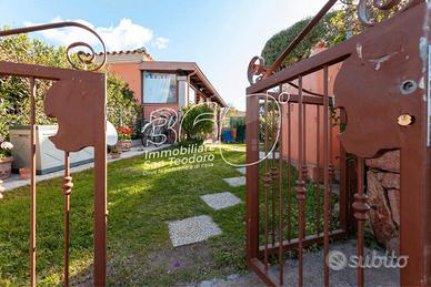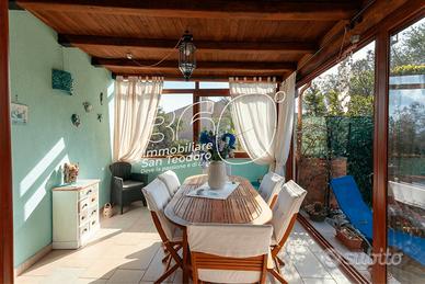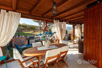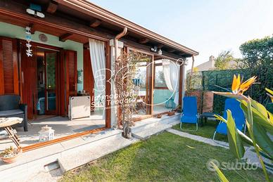 Dal giardino attrezzato di zona barbecue e doccia esterna si accede ad una veranda coperta arredata di tavolo e sedie e zona relax dove poter trascorrere delle splendide serate all'aperto.