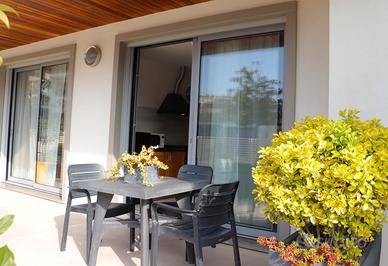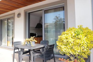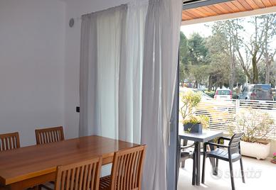 Si compone di: scoperto dotato di arredo esterno, soggiorno cottura con divano letto matrimoniale, camera matrimoniale, bagno finestrato con box doccia.