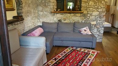 Ampio bilocale di 55 mq posto al pian terreno, in contesto d'epoca sito nel centro storico comodo con tutti i servizi (alimentari, macelleria, farmacia, bar, pizzeria, posta, imbarcadero) l'appartamento che può ospitare fino a 5 persone è composto da ingresso, spazioso open space dove la zona notte è separata da un elegante tendone, dal disimpegno si accede al bagno ed a un secondo ingresso con comodo ripostiglio, di fronte giardino privato di 100mq con affaccio diretto al lago D'iseo, affitto con un minimo di 3 gg a un