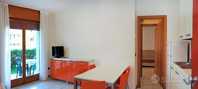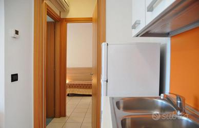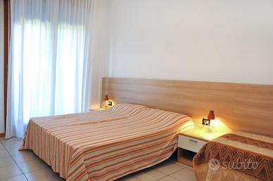 Bilocale di ampie dimensioni composto da ingresso-soggiorno con angolo cottura e divano letto matrimoniale, disimpegno, ampia camera matrimoniale con letto matrimoniale e letto singolo, bagno finestrato con box doccia e lavatrice.