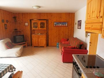In totale 5 posti letto (2 in camera da letto matrimoniale, 2 in divano letto matrimoniale in soggiorno, 1 in poltrona letto singola in soggiorno). Riscaldamento autonomo, posto auto riservato nel cortile del condominio, doppia esposizione con 2 balconi esterni, al piano rialzato ripostiglio per sci e scarponi.