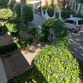 Posto auto riservato nel giardino della villetta e deposito bici.