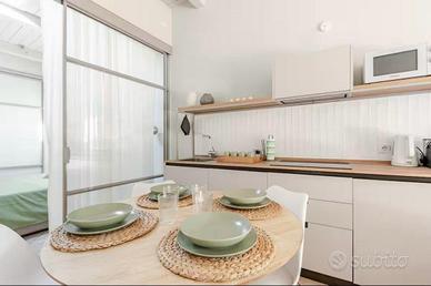 E' composto da soggiorno/pranzo con divano letto, zona notte con letto matrimoniale, bagno con box doccia, fantastico terrazzo abitabile di importante metratura