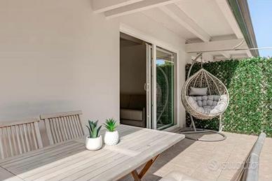 Finimente rifinito, è dotato di tv, lavatrice, divano letto, tavolo e sedie per terrazzo.