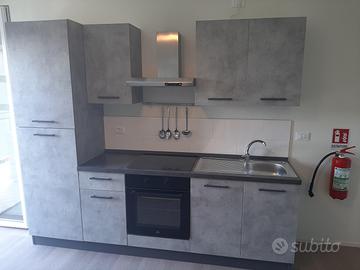E' composto da cucinotto, soggiorno/pranzo con divano letto, una camera matrimoniale, bagno, terrazzo abitabile attrezzato con tavolo e sedie, corte condominiale con posti auto.