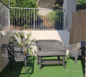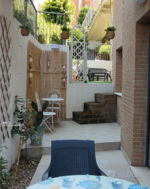Fresca corte esterna esposta al nord , terrazzata e arredata con salottino e tavolo esterno.