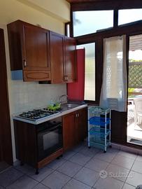 Bilocale a Tropea all'interno di una villetta, per due o tre persone, molto comodo, con tutti i servizi e quello che occorre per soggiornare comodamente, è composto da: soggiorno cucina con forno con tutto l'occorrente, più frigo, camera da letto con letto matrimoniale e se occorre, peril terzo ospite, anche un letto singolo nella stessa stanza, bagno con doccia dove èubicata anche la lavatrice. Il bilocale è fornito anche di un condizionatore. All'esterno del bilocale c'è un patio di circa 20 metri con tenda apribile, fornito di un tavolo, sedie e sdraio. Inoltre dentro la villetta è possibile parcheggiare l'auto. Il bilocale dista dal centro e dalla spiaggia circa 800 metri.