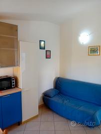 - Soggiorno con tavolo, divano letto da 140cm (1piazza e mezza), tv, frigo e freezer.