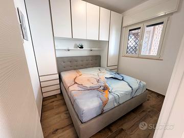 INTERNO: L'immobile, ristrutturato nel 2024 è dotato di cucina a induzione con lavastoviglie e forno, divano letto matrimoniale nella zona living, letto matrimoniale in camera, lavasciuga in terrazza, infissi in alluminio con doppi vetri e tapparelle elettriche, due split aria condizionata freddo/caldo, termoarredo in bagno , porta di ingresso in alluminio con scuro esterno in alluminio, pavimentazione in gress effetto legno, bagno con sanitari sospesi, boiler per acqua calda, Tv nella zona living, presa Tv in camera e in terrazza, porte interne in legno bianco a libro.