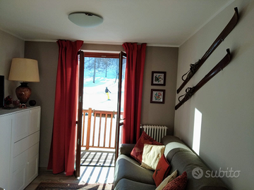 Se soggiornerai nel bilocale troverai: un balcone spazioso ben esposto che si affaccia sulla pista, dotazione completa di pentole e suppellettili, letto matrimoniale alla francese con materasso h. 30 per un buon riposo, divano letto 140x200 con materasso h 18 per garantire anche qui un vero posto letto, lenzuola e asciugamani, Wi-Fi, Smart TV 32'.