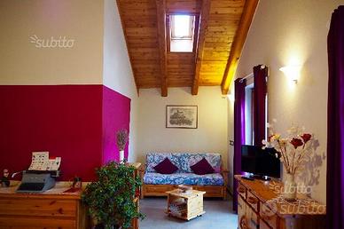 Grazioso e soleggiato bilocale di 50 m2, ristrutturato recentemente e arredato unendo tradizione e modernità, posto all'ultimo piano di una casa indipendente situata in una zona tranquilla con vista su meravigliosi paesaggi montani, e immerso nella natura. Solo il canto degli uccellini (o del gallo del vicino) potrà svegliarvi!