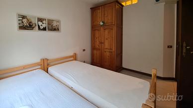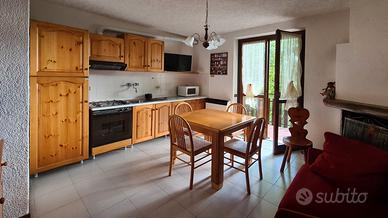 Grazioso bilocale a Piazzatorre dotato di cucina con divano letto e balcone che dà sulle montagne circostanti, bagno e camera da letto con due letti singoli.