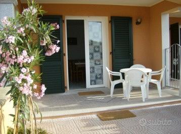 Privato affitta bilocale arredato confortevolmente 4 posti letto,composto da camera da letto matrimoniale, soggiorno con angolo cottura e divano letto matrimoniale, bagno e sgabuzzino, in palazzina di recente costruzione. Il bilocale è dotato di un'ampia veranda arredata per poter mangiare all'aperto, tv color, lavatrice, ferro da stiro e barbecue. Il bilocale ha anche un giardino privato recintato e parcheggio all'interno della proprietà. Barbecue ad uso esclusivo.
